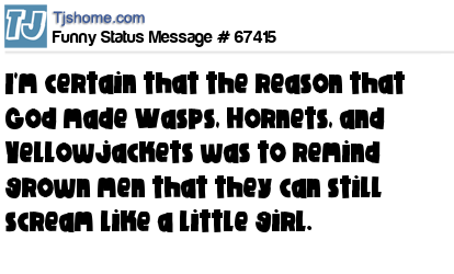X I'm certain that the reason that God made Wasps, Hornets, and Yellowjackets was to remind grown men that they can still scream like a little girl.