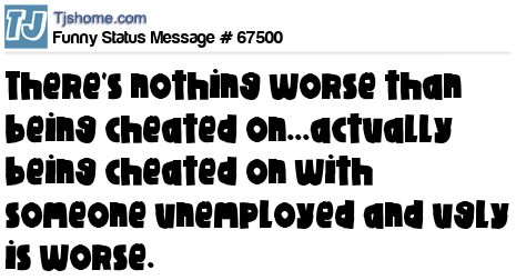 X says There's nothing worse than being cheated on...actually being cheated on with someone unemployed and ugly is worse.