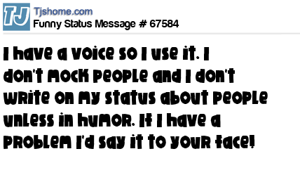 X I have a voice so I use it. I don't mock people and I don't write on my status about people unless in humor. If I have a problem I'd say it to your face!