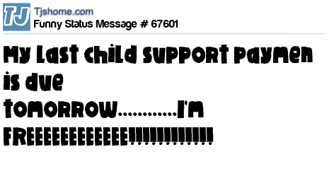 X is My last child support paymen is due tomorrow............I'm FREEEEEEEEEEEE!!!!!!!!!!!!