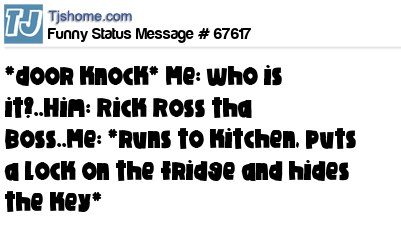 X *door knock* Me: who is it?..Him: Rick Ross tha Boss..Me: *runs to kitchen, puts a lock on the fridge and hides the key*