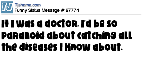 X is If I was a doctor, I'd be so paranoid about catching all the diseases I know about.