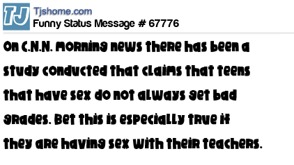 X is On C.N.N. morning news there has been a study conducted that claims that teens that have sex do not always get bad grades. Bet this is especially true if they are having sex with their teachers.
