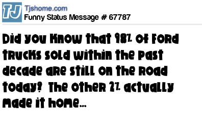 - # 59927 95% of all Fords sold in the last 20 years are still on the road today. The other 5% actually made it home.