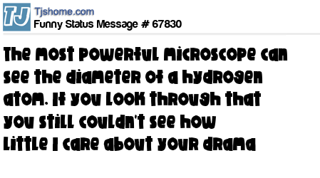 X says The most powerful microscope can see the diameter of a hydrogen atom. If you look through that you still couldn't see how little I care about your drama
