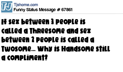 - # 72483 If sex between 3 people is called a Threesome and sex between 2 people is called a Twosome... Why is Handsome still a compliment? ;)