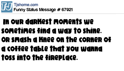 X In our darkest moments we sometimes find a way to shine. Or smash a knee on the corner of a coffee table that you wanna toss into the fireplace.