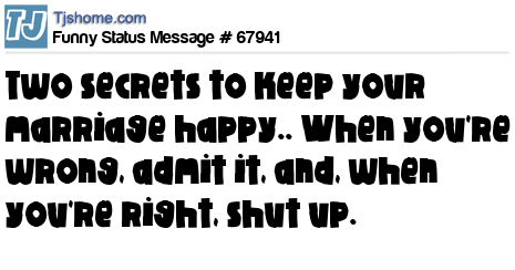 - # 206357 Two secrets to keep your marriage happy.....When you're wrong, admit it, and, when you're right, shut up!