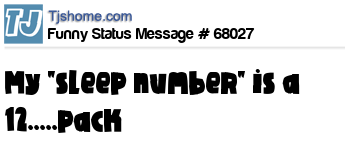 - # 130161 The Sleep Number bed commercial came on & the spokeswoman asked "So what's YOUR sleep number?" I hollered out "80 proof."