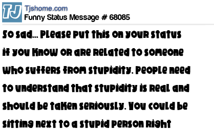 - # 62783 Please put this on your status if you know someone or are related to someone who suffers from stupidity. People need to understand that stupidity is real & should be taken seriously. You could be sitting next to a sufferer right now.