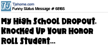 - # 23092 Just Saw A Bumper Sticker That Said... "My High School Dropout, Knocked Up Your Honor Roll Student..."
