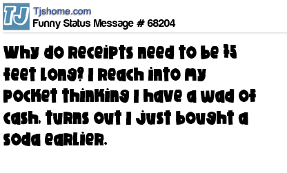 X Why do receipts need to be 75 feet long? I reach into my pocket thinking I have a wad of cash, turns out I just bought a soda earlier.