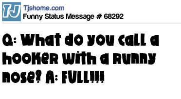 - # 106459 What do you call a hooker with a runny nose? Full.