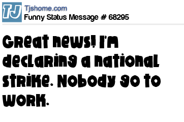 X Great news! I'm declaring a national strike. Nobody go to work.