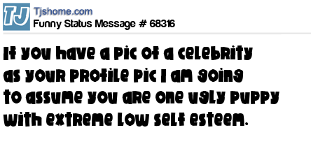 X says If you have a pic of a celebrity as your profile pic I am going to assume you are one ugly puppy with extreme low self esteem.
