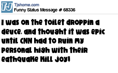 X is I was on the toilet droppin a deuce, and thought it was epic until CNN had to ruin my personal high with their eathquake kill joy!