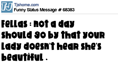 X says Fellas : not a day should go by that your lady doesn't hear she's beautiful .