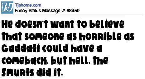 X says He doesn't want to believe that someone as horrible as Gaddafi could have a comeback, but hell, the Smurfs did it.