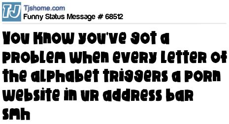 - # 146523 I think you know you've got a problem when every letter of the alphabet triggers a porn bonanza in your address bar.