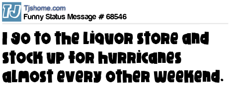 X I go to the liquor store and stock up for hurricanes almost every other weekend.