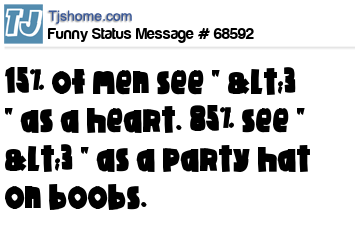 X 15% of men see " <3 " as a heart. 85% see " <3 " as a party hat on boobs.