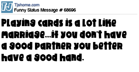 X playing cards is a lot like marriage...if you don't have a good partner you better have a good hand.