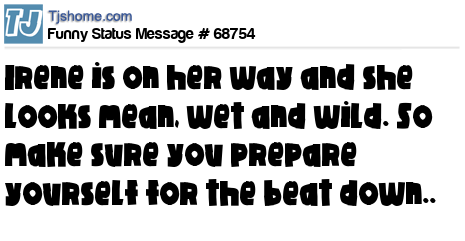 X Irene is on her way and she looks mean, wet and wild. So make sure you prepare yourself for the beat down..