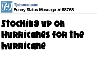 - # 69603 Can we name the next hurricane Shaniqua or something? I feel like if we give hurricanes ghetto names, people will be more inclined to get away from them. Hurricane Irene sounds friendly. Hurricane Shaniqua will rip out your weave if you look at it wrong.