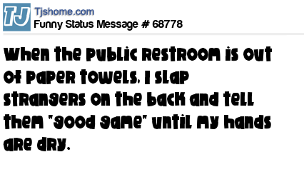 X When the public restroom is out of paper towels, I slap strangers on the back and tell them "good game" until my hands are dry.