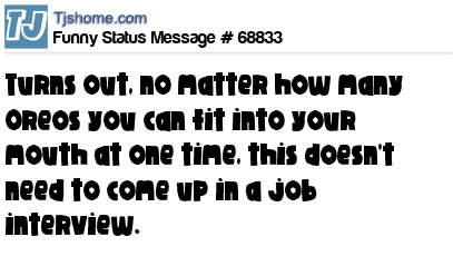 X is Turns out, no matter how many Oreos you can fit into your mouth at one time, this doesn't need to come up in a job interview.
