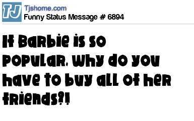 - # 7852 If Barbie is so popular, why do you have to buy her friends?