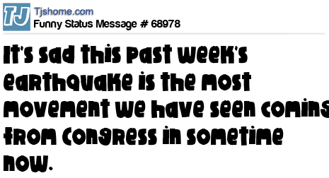 - # 69043 It's sad that... last week's earthquake was the most movement we have seen coming from Congress in quite sometime now.