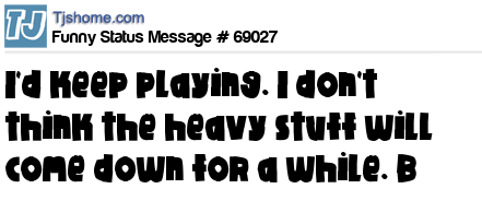 X says I'd keep playing. I don't think the heavy stuff will come down for a while. B