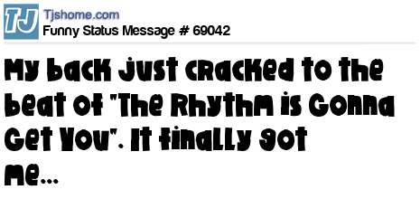 X is My back just cracked to the beat of "The Rhythm is Gonna Get You". It finally got me...