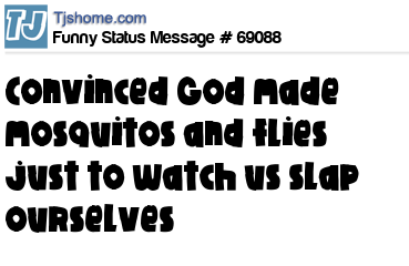 X is convinced God made mosquitos and flies just to watch us slap ourselves