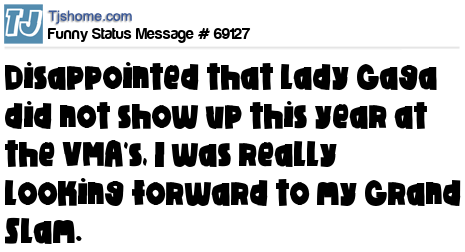X is Disappointed that Lady Gaga did not show up this year at the VMA's, I was really looking forward to my Grand Slam.