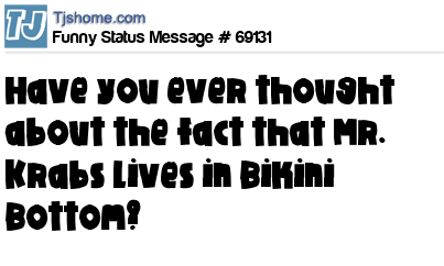 - # 102785 n't it funny that Mr. Krabs lives in Bikini Bottom? Coincidence? I think not!