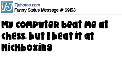 - # 41193 A computer once beat me at chess, but it was no match for me at kick boxing.