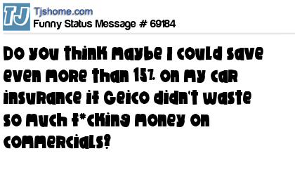 X Do you think maybe I could save even more than 15% on my car insurance if Geico didn't waste so much f*cking money on commercials?