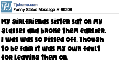- # 44557 My wifes sister sat on my glasses and broke them earlier,I was was so pissed of....Though to be fair it was my owne fault for leaving them on.