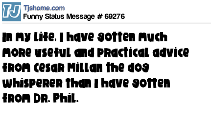 X says In my life, I have gotten much more useful and practical advice from Cesar Millan the dog whisperer than I have gotten from Dr. Phil.