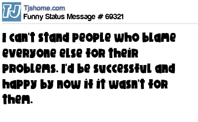 - # 74079 I can't stand people who blame everyone else for their problems....I'd be successful and happy by now if it wasn't for them!!!!