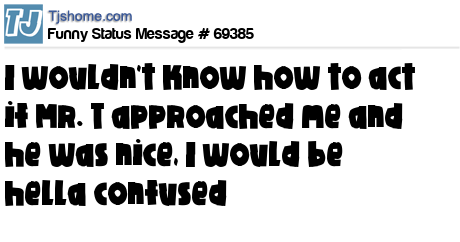 X I wouldn't know how to act if Mr. T approached me and he was nice, I would be hella confused