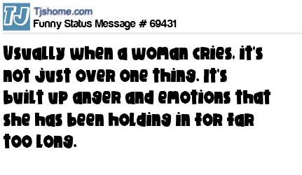 X says Usually when a woman cries, it's not just over one thing. It's built up anger and emotions that she has been holding in for far too long.
