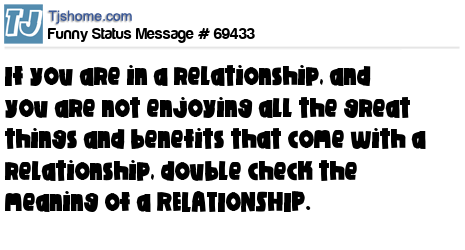 X says If you are in a relationship, and you are not enjoying all the great things and benefits that come with a relationship, double check the meaning of a RELATIONSHIP.
