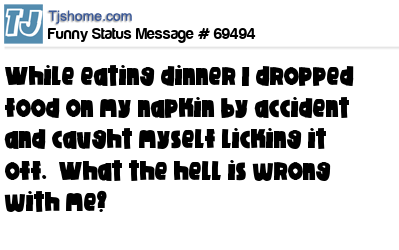 X says While eating dinner I dropped food on my napkin by accident and caught myself licking it off. What the hell is wrong with me?