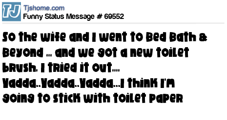 X So the wife and I went to Bed Bath & Beyond ,,, and we got a new toilet brush, I tried it out,,,, Yadda..Yadda..Yadda...I think I'm going to stick with toilet paper