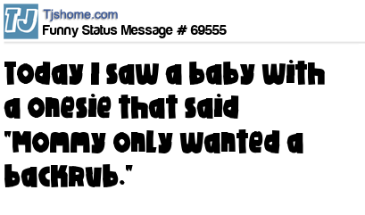 X Today I saw a baby with a onesie that said "Mommy only wanted a backrub."