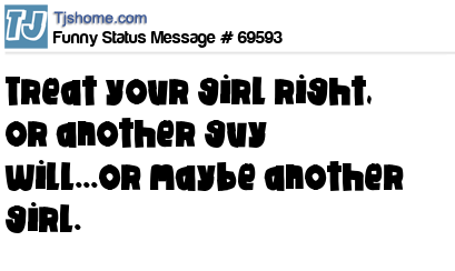 X says Treat your girl right, or another guy will...or maybe another girl.