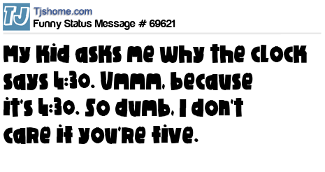 X My kid asks me why the clock says 4:30. Ummm, because it's 4:30. So dumb, I don't care if you're five.